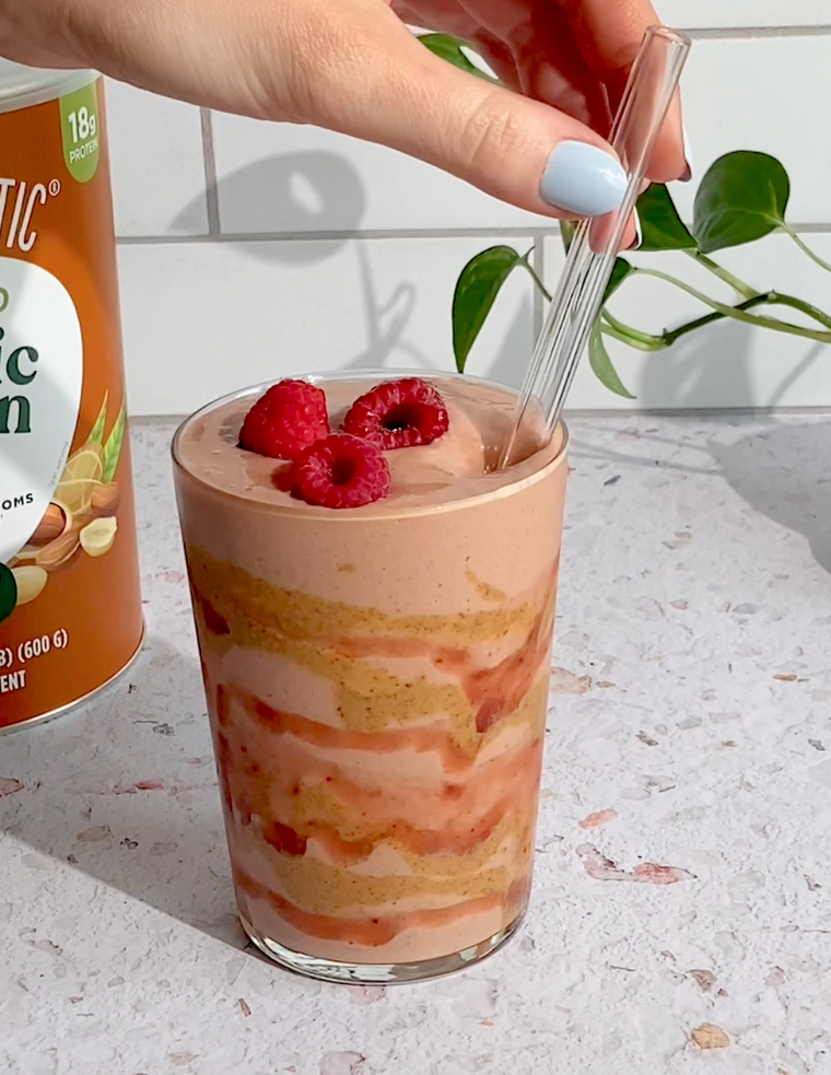 And of course, we recommend Four Sigmatic Organic Peanut Butter Plant-Based Protein for extra benefits in every sip. Plus, it's creamy, protein-packed, and made with real peanuts for a flavorful peanut butter punch.
