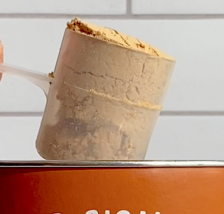 - 1 scoop Four Sigmatic Peanut Butter Protein