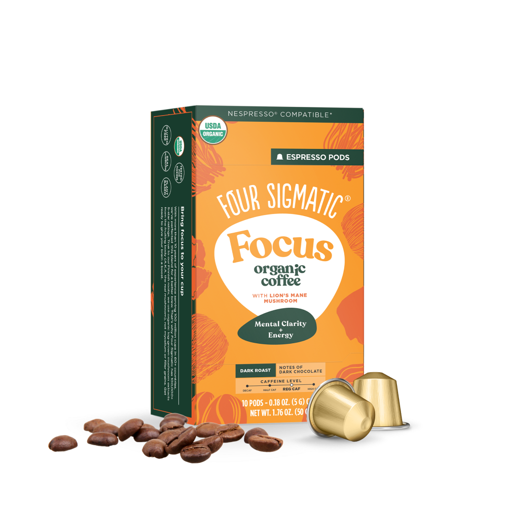 The first functional espresso pod! Organic coffee infused with lion’s mane mushrooms for focus without the jitters. Just pop this pod into your Nespresso® original machine to enjoy energy and focus in minutes—and see results in as little as 7 days.