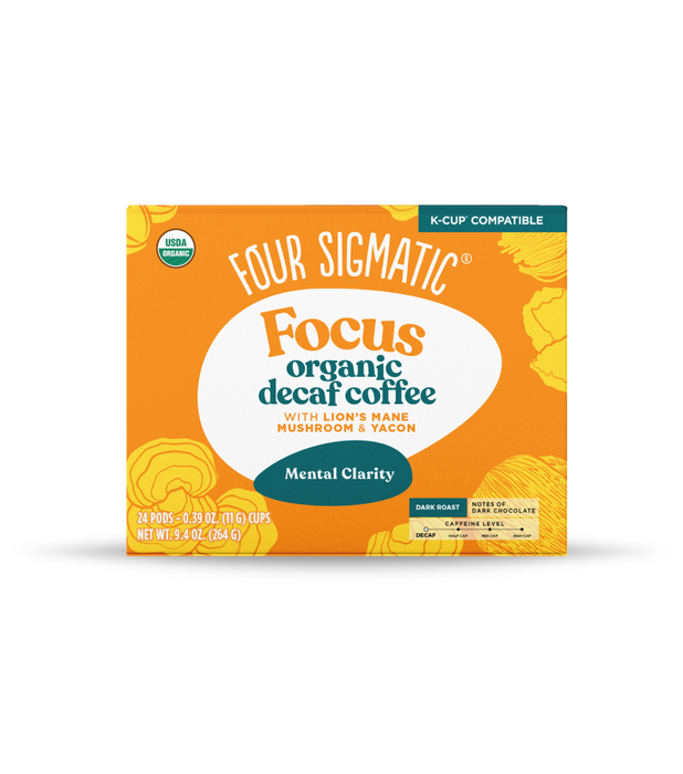 Organic decaf coffee infused with lion’s mane. Just pop this recyclable* pod into your Keurig® and enjoy energy and focus minus caffeine. Only available online.