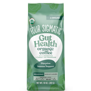 Your stomach will thank you. Organic medium roast coffee gets a gut-friendly boost from probiotics, prebiotics, turkey tail and chaga mushrooms.